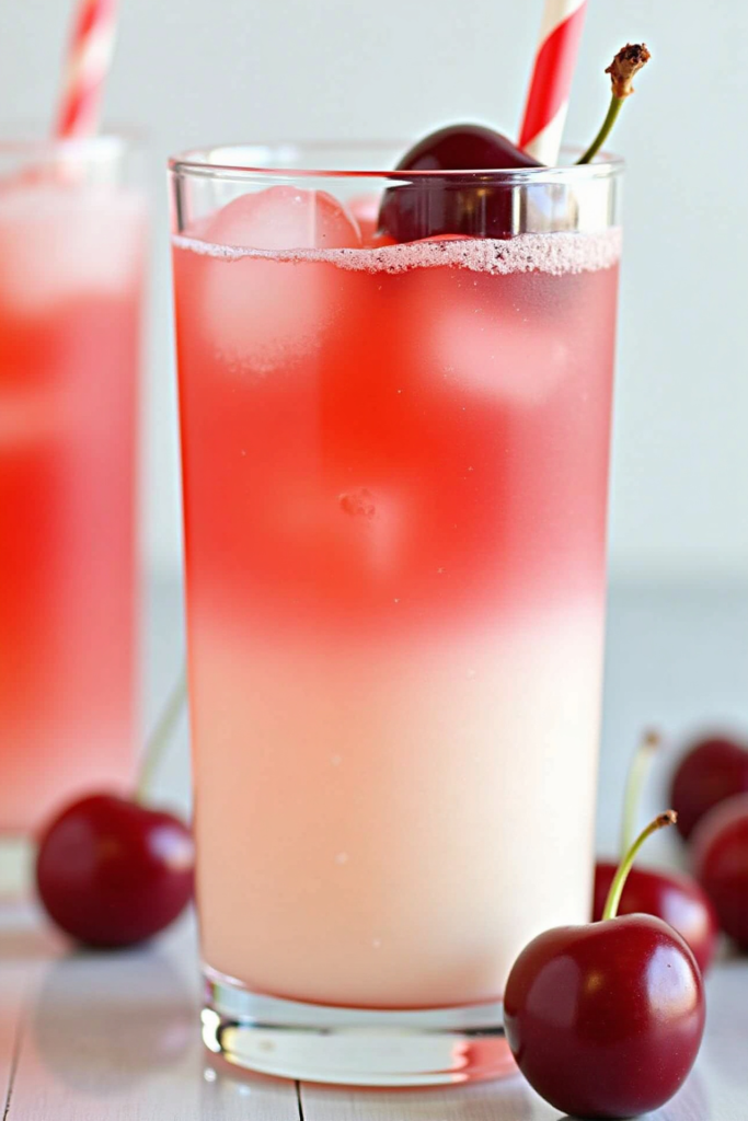 - Garnish with fresh cherries, a mint sprig, and (optional) rainbow sprinkles. Add a colorful straw for fun!