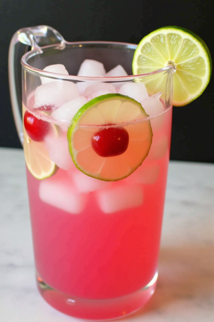 All you need are lemon-lime soda, cherry juice or syrup, and fresh limes. The cherry syrup brings out a deep red hue and rich, fruity sweetness, while the fresh-squeezed lime juice cuts through with bright, tangy notes. Simply stir everything together and serve it over ice. If desired, garnish with lime wheels or fresh cherries for extra flair.