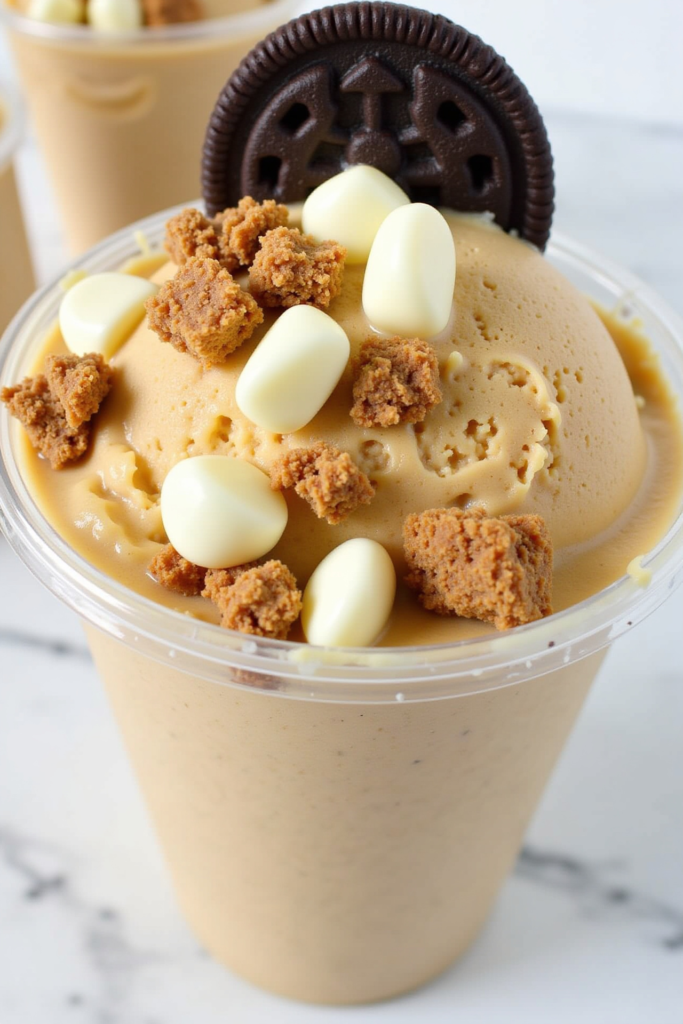 6. Allow to sit at room temperature for 5–10 minutes before scooping. Serve with optional toppings as desired.